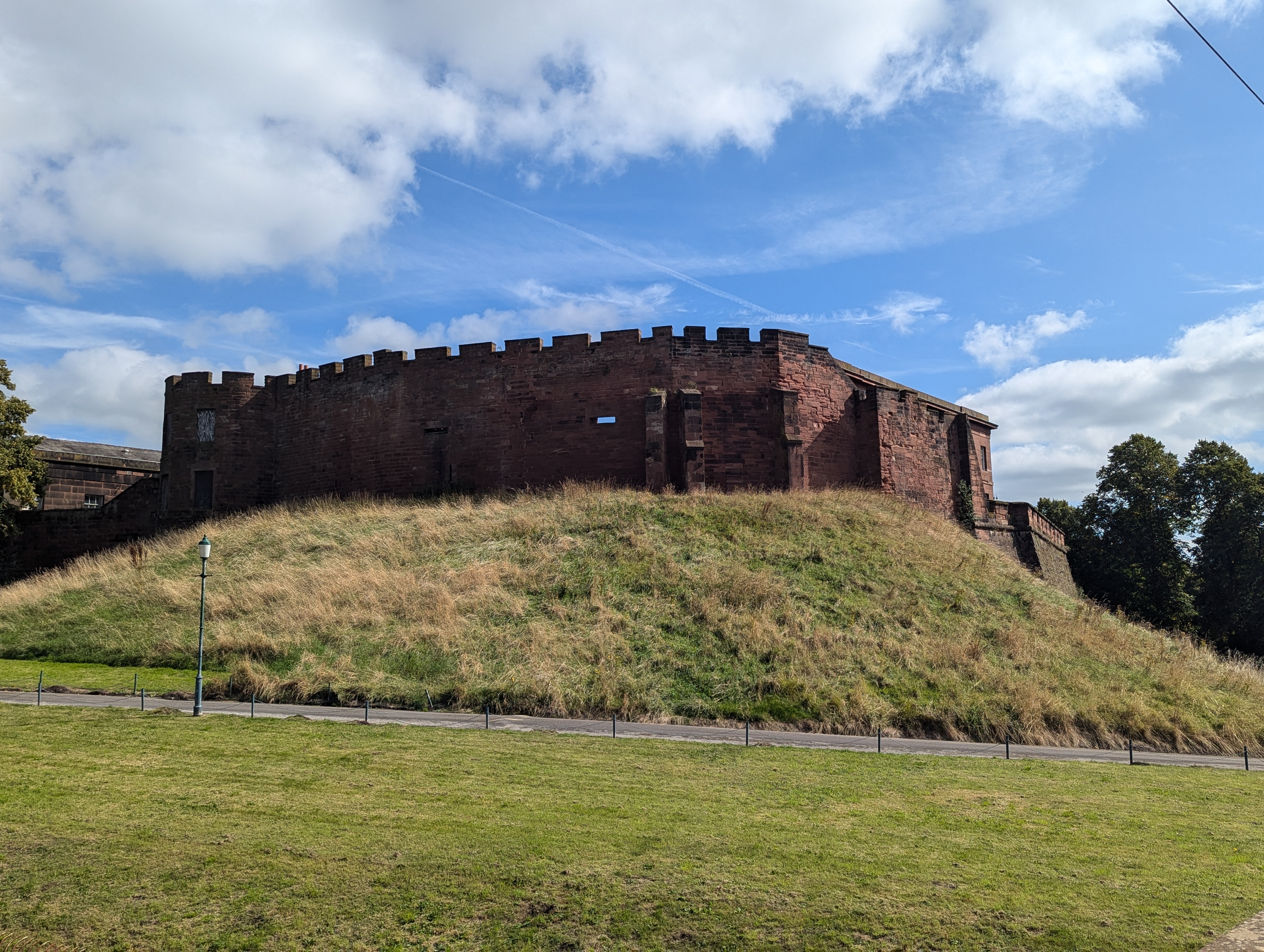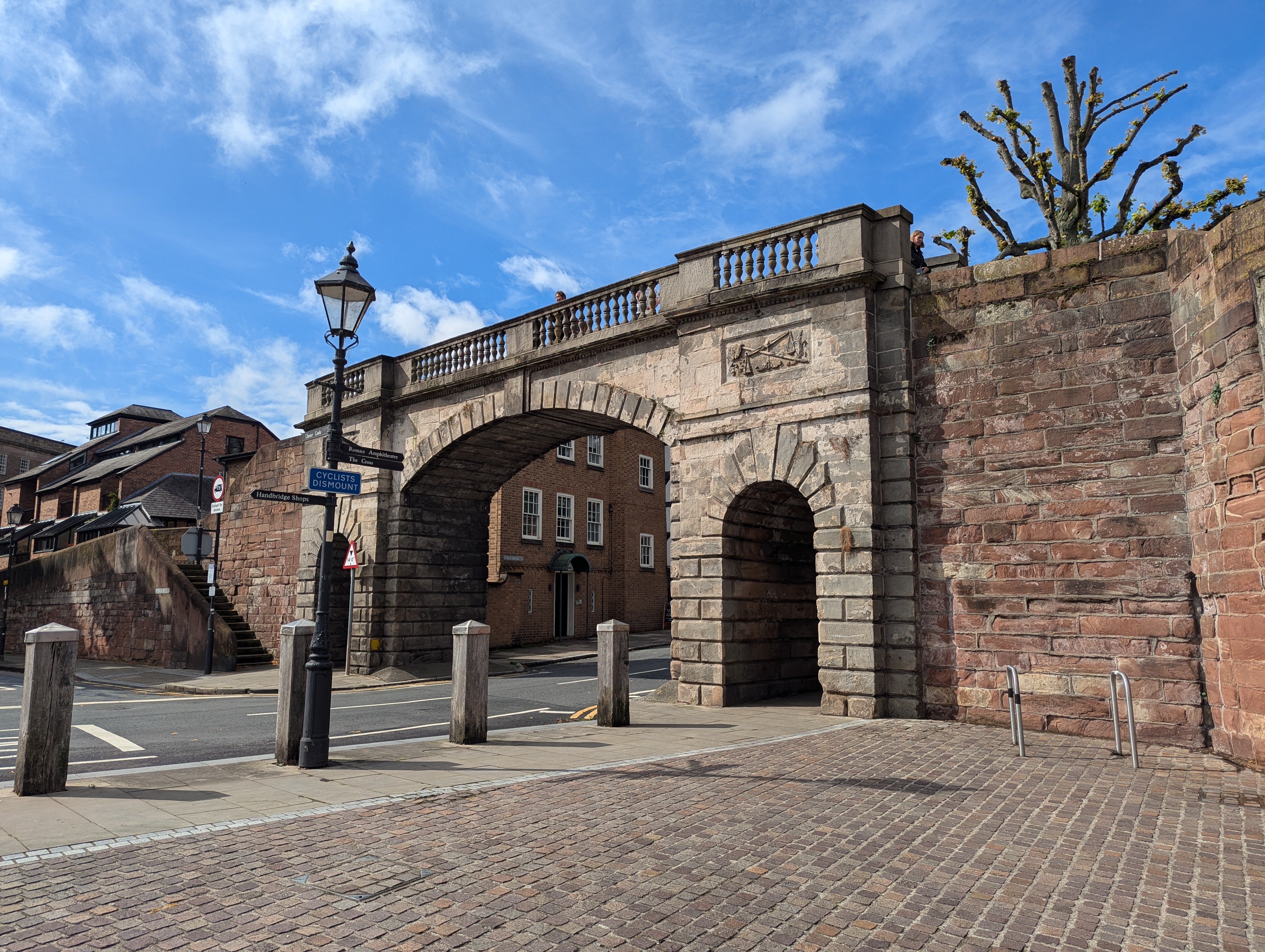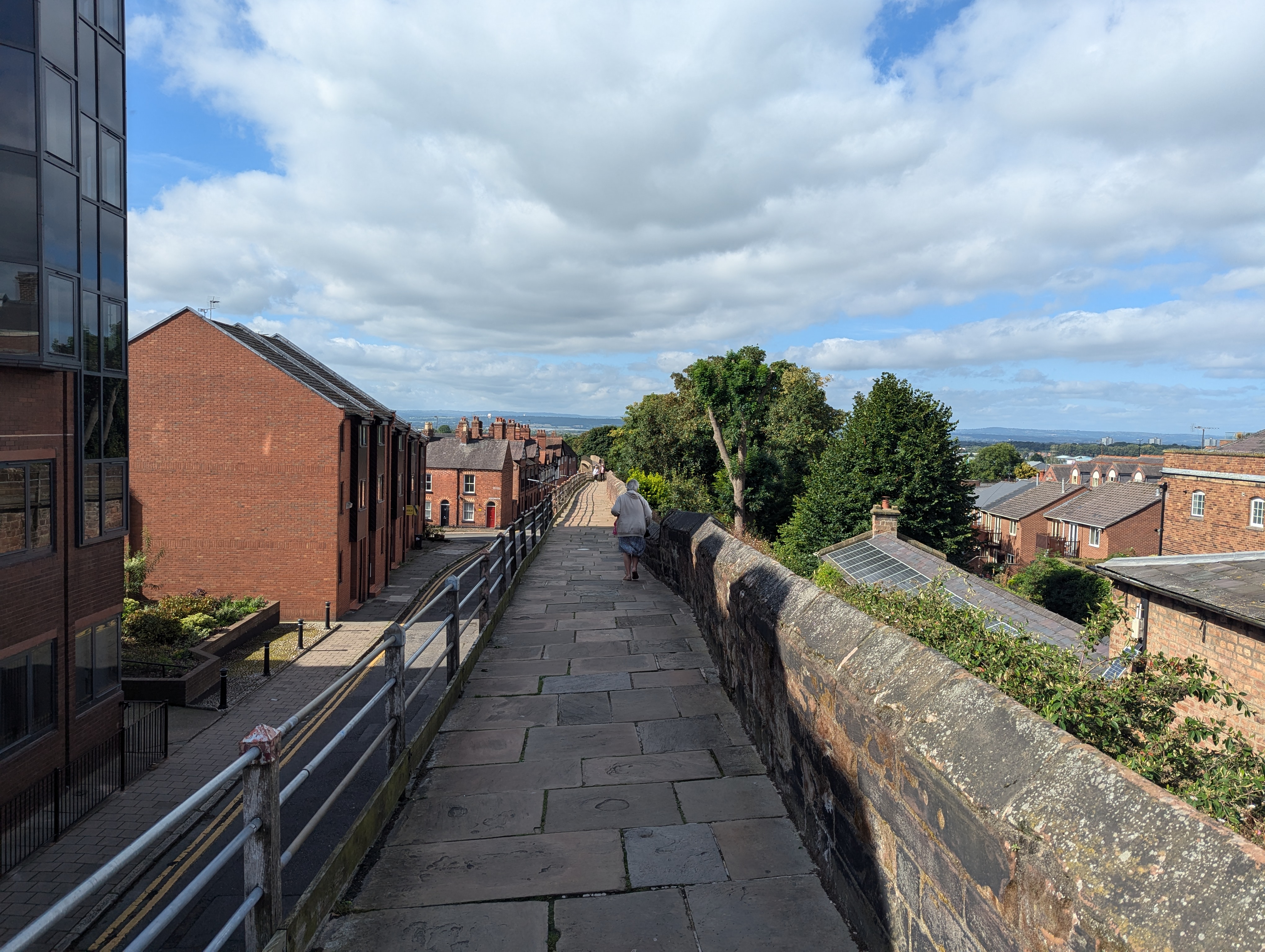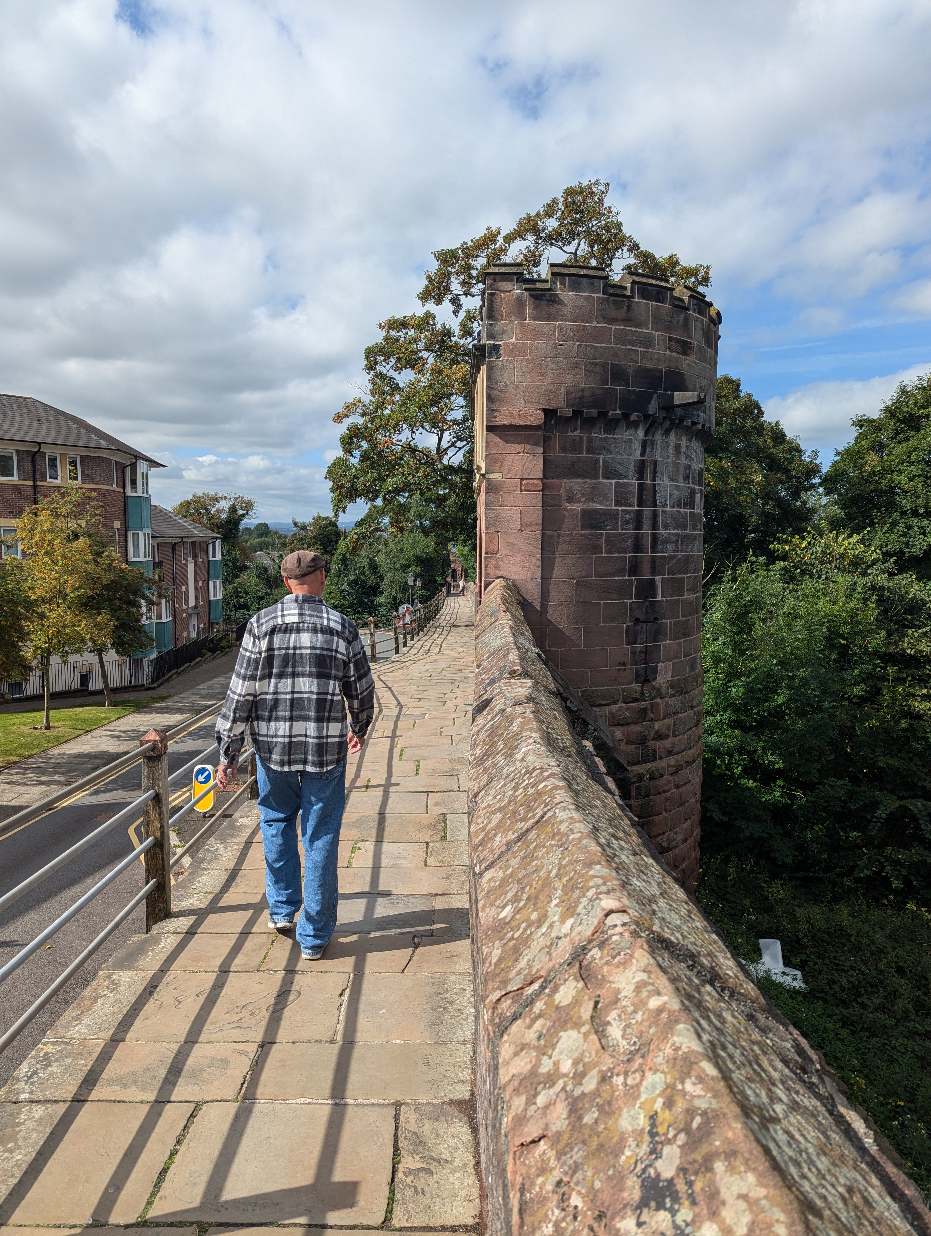 The Chester city center is surrounded by ancient defensive walls. The walls were originally built during the Roman occupation around 70-80 AD (it took over 100 years). The walls were later (700 AD?) extended and strengthened by the Angles (Germanic people) to protect against the Danes (Vikings). The walls are some of the best preserved in England and are accessible to the public, so of course we walked the nearly 3k loop.